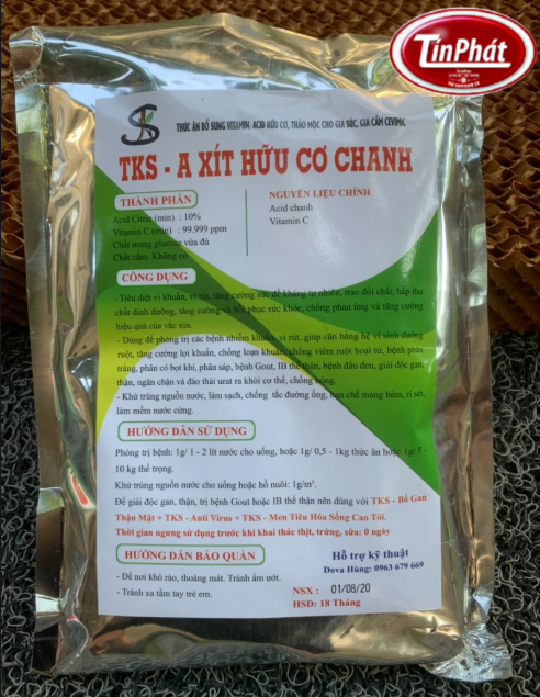 - Acid Citric (Acid chanh): 10% - Vitamin C (min): 99.999 ppm